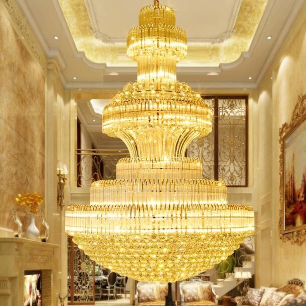 Large gold finish crystal chandelier